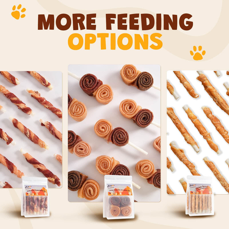 ASMPET Chicken Duck Rawhide Dog Chew, Triple Flavor Long-Lasting Treat for Dogs, 10.5oz.