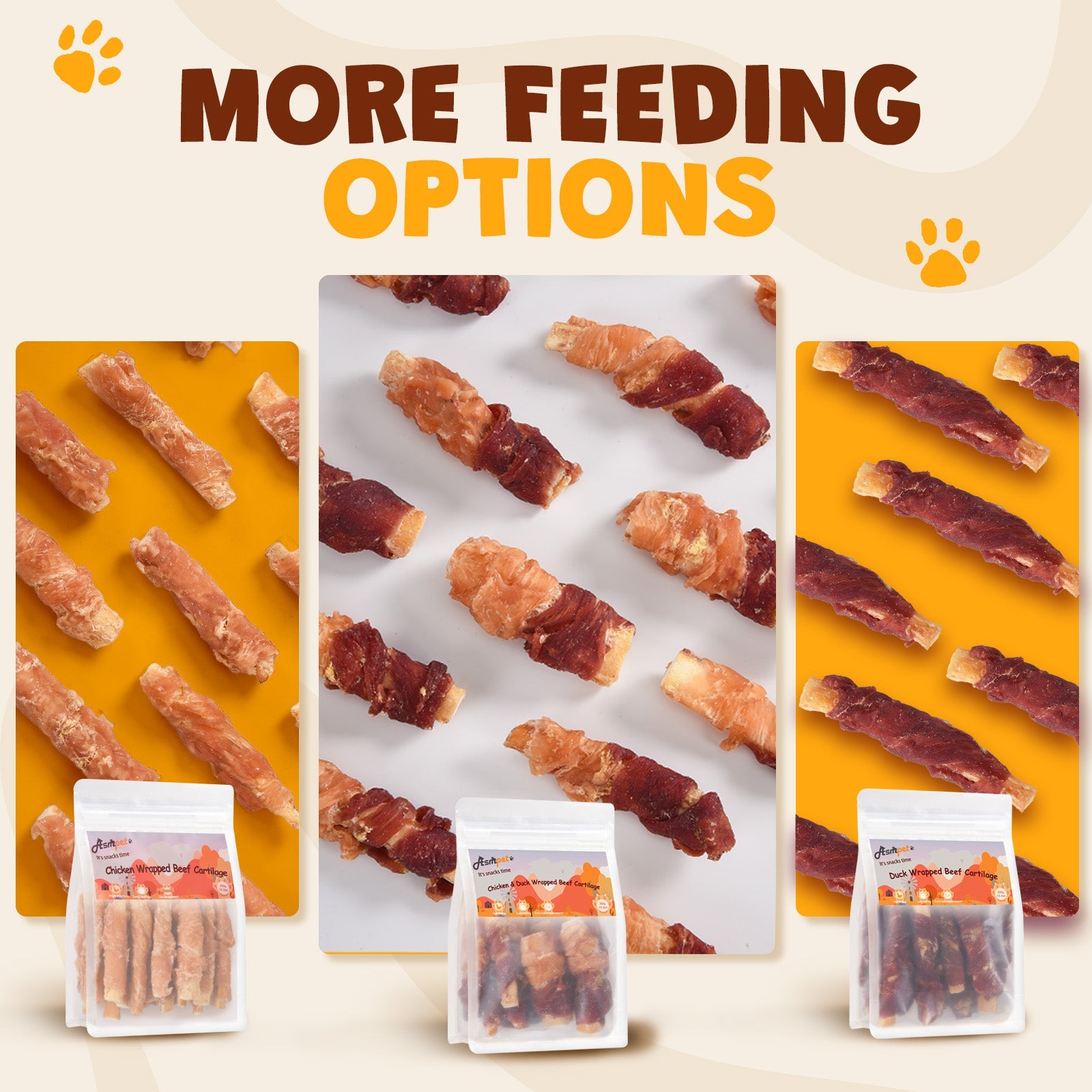 ASMPET Chicken Wrapped Beef Cartilage with Duck Dog Treats, High Calcium Chewy Dog Soft Bone for Small, Medium, Large Dogs (10.6oz, No Rawhide)