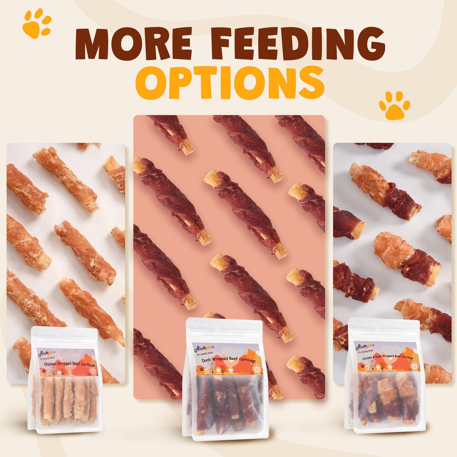 ASMPET Duck Wrapped Beef Cartilage Dog Treats, Long-Lasting Chewy Dog Soft Bone for Small, Medium, Large Dogs (10.6oz, No Rawhide)