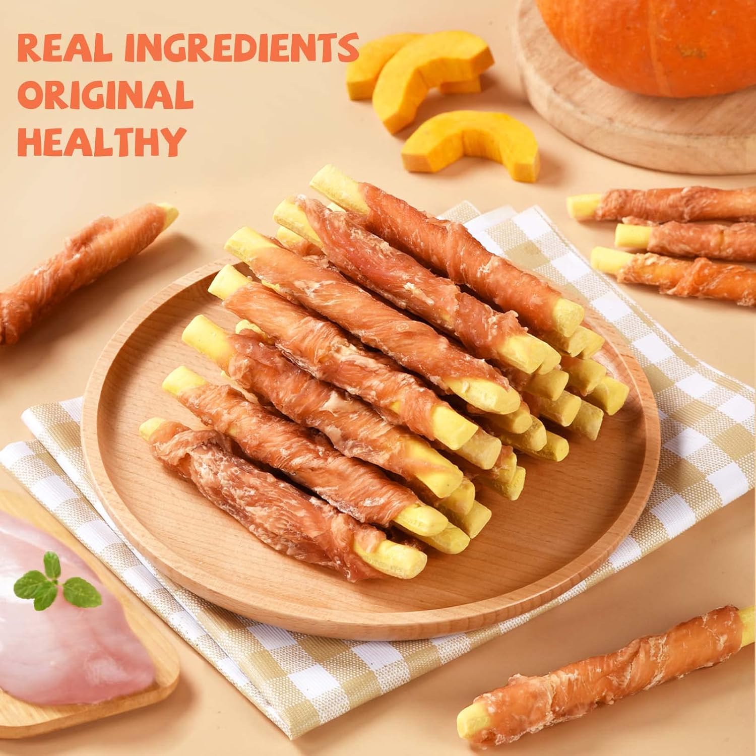 - Nutritious and Healthy: 100% Pure Natural Real Chicken Wrapped Pumpkin Biscuits Sticks are rich in vitamins, minerals, crude fiber, trace elements, protein, and the nutritional mix is healthy and reasonable