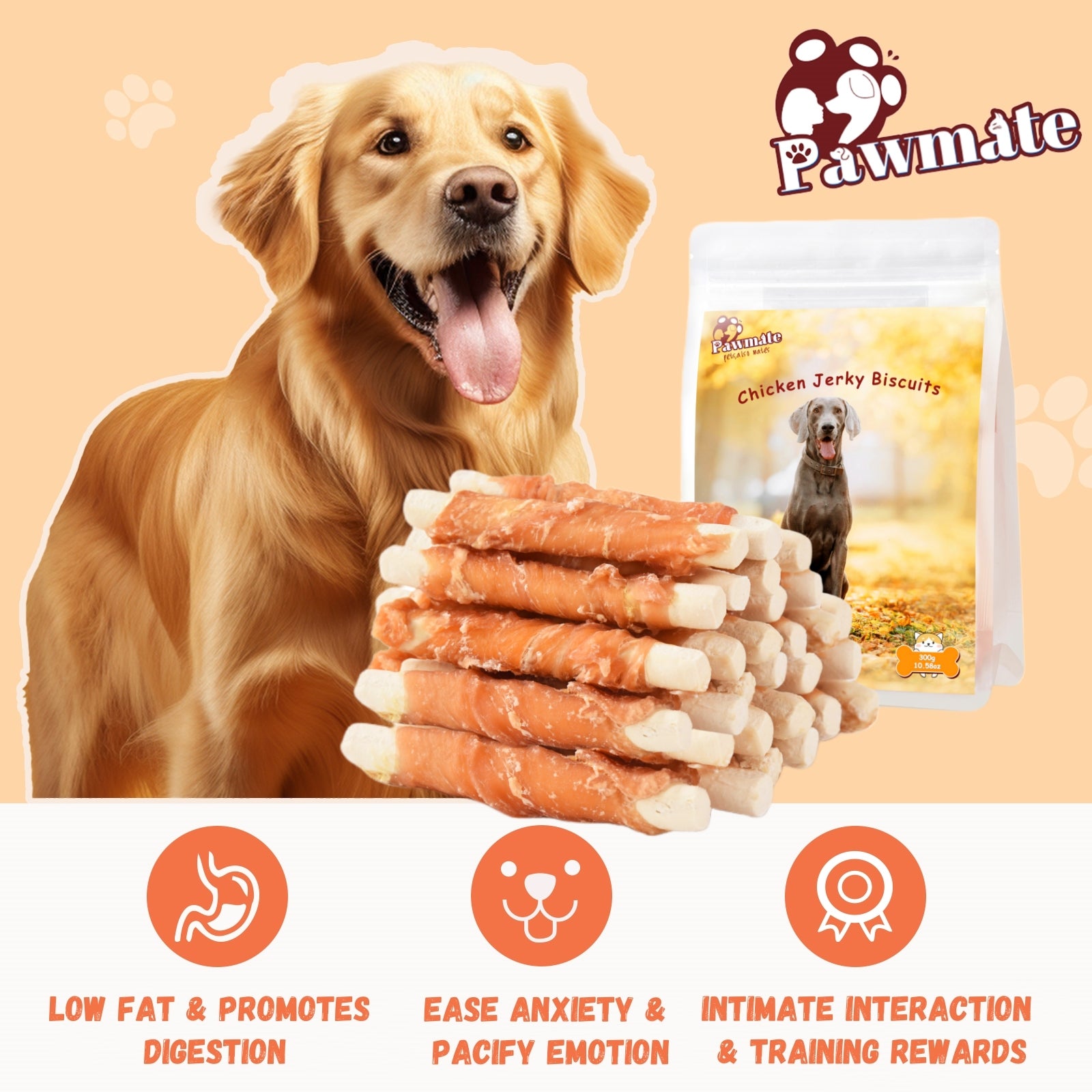 Pawmate Chicken Jerky Biscuits Dog Treats, Tasty Crunchy Chews for All Dogs, 11oz